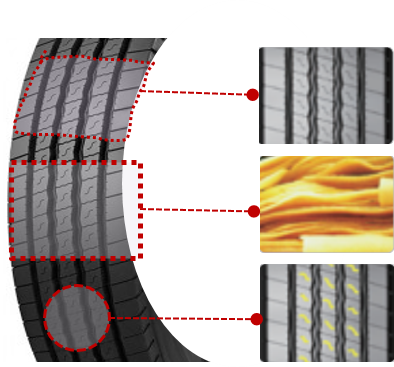 - Mayor resistencia al desgaste y mayor kilometraje: Diseño de cuatro surcos longitudinales para una excelente dirección, antideslice y antiderrape.